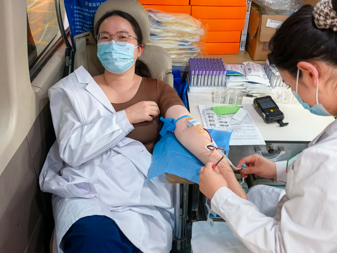 手术室护士赵艳的身影格外引人注目。她不仅自己积极报名献血,还特意打电话喊来正在家休息的丈夫一同参与。“平时总听她讲献血的意义,今天终于有机会和她一起为社会做点贡献。” 赵艳的丈夫笑着说。夫妻二人并肩坐在献血车上,手臂并排伸出,针头刺入皮肤时,他们相视一笑,眼中满是支持与默契。献血过程中,赵艳还不忘叮嘱丈夫:“献完血别马上剧烈运动,记得多喝水。” 简单的关怀话语,配上两人脸上洋溢的奉献喜悦,成为献血现场最动人的风景,被现场同事纷纷用手机记录下来,大家都说:“这是最美的夫妻档,用双倍爱心为生命助力!”