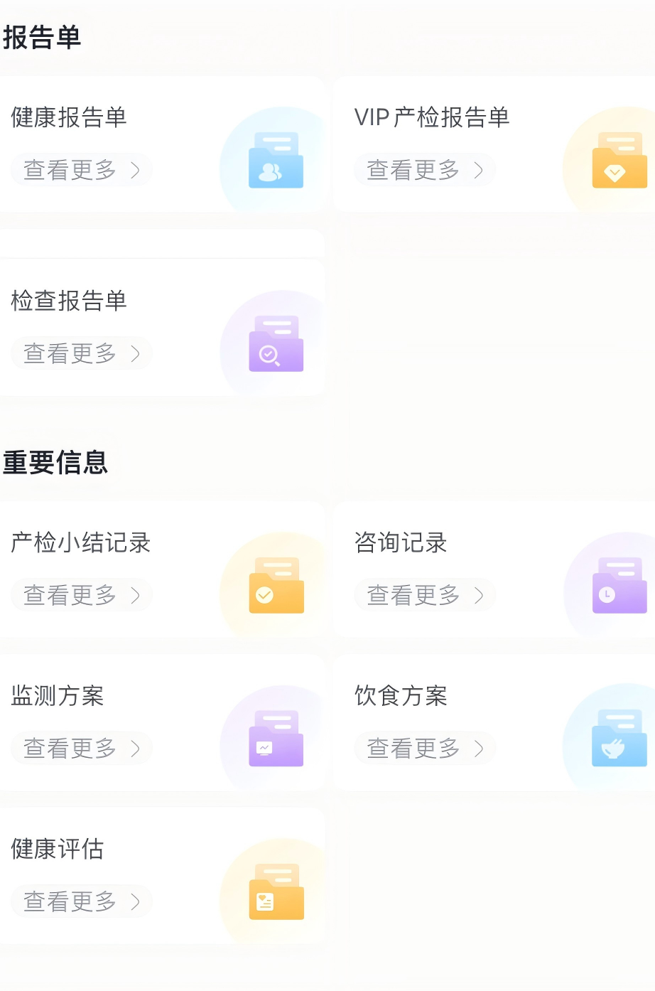 每次产检结束后,管家会将详细产检小结(包括宫高、腹围、胎心、血常规、B 超等所有指标)上传至专属健康管理平台,手机端即可随时查看。再也不用担心纸质报告丢失,过往检查数据一键追溯,后续产检时专家能快速掌握你的健康趋势,做出更精准的判断。