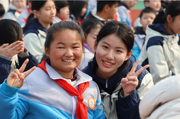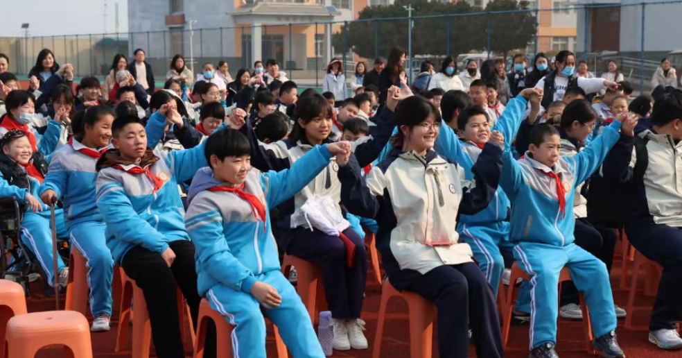 两所学校的同学们轮番登台,用才艺传递真挚情谊。一首合唱《你笑起来真好看》,将现场气氛推向高潮,操场上汇聚成一片温暖的海洋。