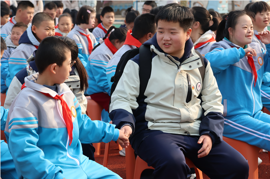 为深入弘扬雷锋精神,践行志愿服务理念,传递互助友爱正能量,扎实推进党团队一体化育人体系走深走实,充分发挥党员先锋模范作用、团员示范引领作用与少先队员小主人作用,3月11日上午,菏泽市万福实验学校组织党员教师、共青团员、少先队员代表,共同前往特殊教育学校,开展了以“融合共绘同心圆,雷锋精神伴我行”为主题的暖心志愿服务活动。师生们以实际行动传承雷锋精神,凝聚党团队同心向善、携手助残的温暖力量,用爱心与陪伴为特殊儿童送去关怀与温暖。
